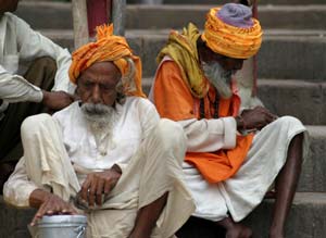 Ces sadhus se préparent justement à un brin de toilette.