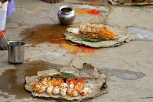 que les pélerins vont déposer dans les eaux du Gange.