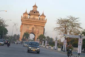 Patuxai, l'Arc de Triomphe trônant au milieu de la ville.