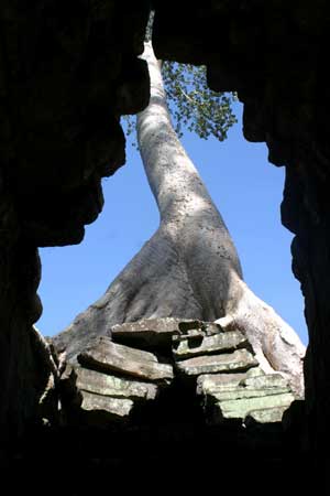 Le plus impressionnant : les arbres ayant envahi les temples en ruine