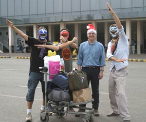 power rangers) à son arrivée de l'aéroport de Saigon,