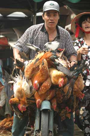 Mais dans la cuisine vietnamienne il y a aussi du poulet, qu'on transporte