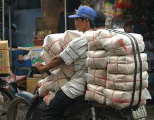 ...et tout ce riz, ce n'est pas forcément facile à transporter.