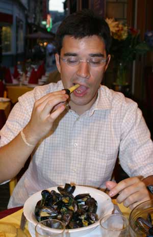 Là je suis en train de manger un frite avec une moule, on ne peut pas faire plus belge... En plus je ne l'ai fait qu'une fois, une fois...(ah ah ah)