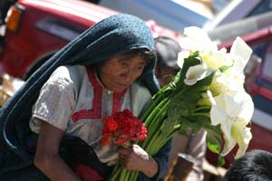 Nous visitons San Juan de Chamula, un petit village du Chiapas où les indiens se retrouvent quotidiennement à l'heure du marché.