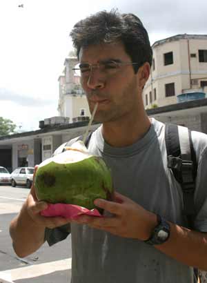 Sylvain et moi essayant d'appeler nos amis oiseaux, et singes.
