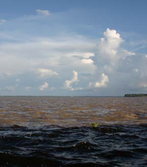 rencontre des eaux du Rio Negro (noires comme son nom l'indique) et de